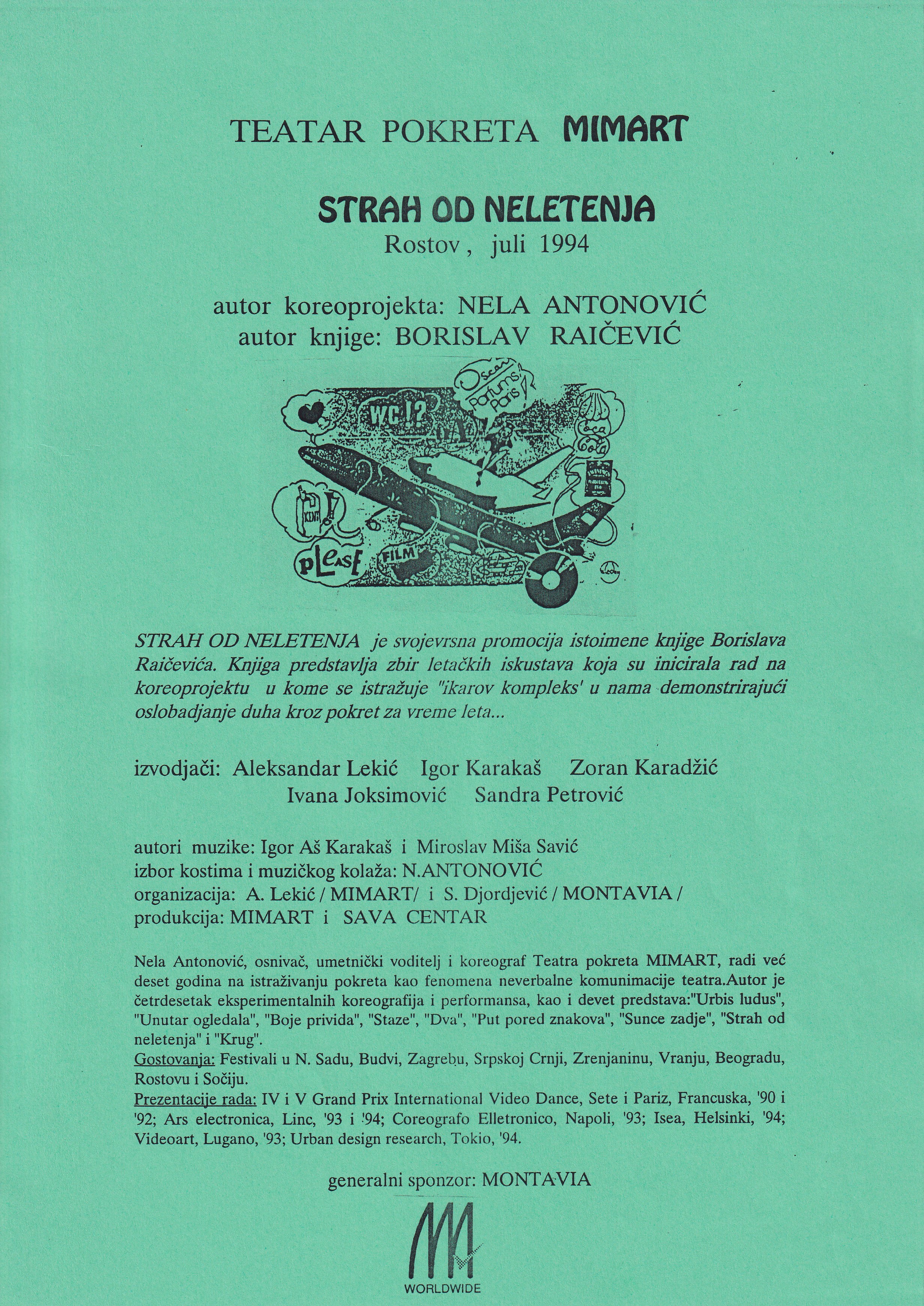 The third part, “Flying,” took place at the Aviation Museum at Surčin Airport. This is the main part of the happening, in which, among the airplanes, a story unfolded about our fear of not flying, about the embargo, about transportation, about Icarus’s fall…