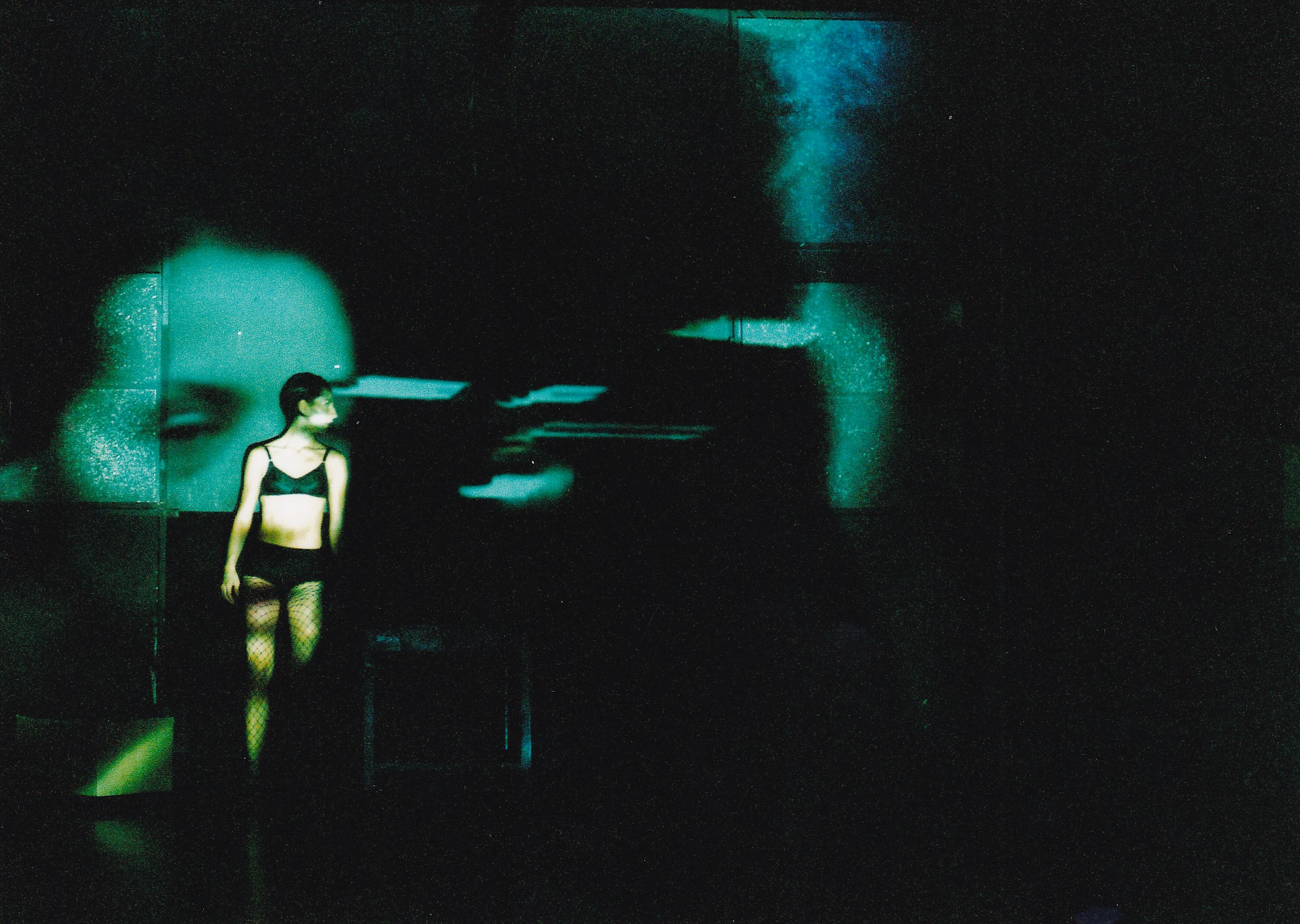 Part of the stage design is also made up of video projections conceived as a counterpoint: pornography and mass media on the one hand, the individual on the other, while the costume design consists of authentic elements characteristic of female sexuality, derived from the bizarre and fetishism, as well as the creation of costumes free from any sexual connotation.