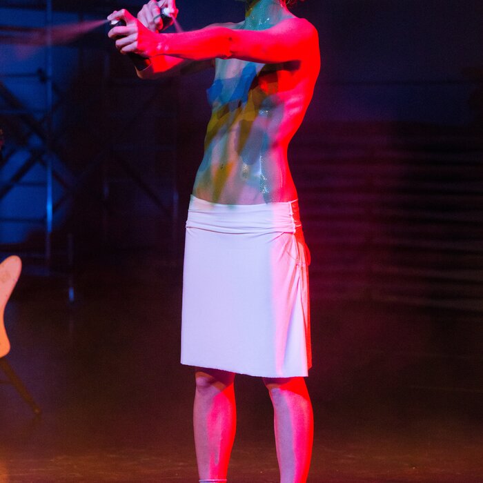 »EDEN juxtaposes two worlds that are simultaneously present in the meeting between a performer and an audience. The here and now of the theatrical meeting collides with the realm of images that hover in the spaces within, outside and in-between the bodies. Working with these images through a figure of a clown, EDEN collides opposites and stages paradoxes playfully and with a sense of humor. EDEN is not a blissful state of rest. EDEN is a place of healing with a razorblade.«
