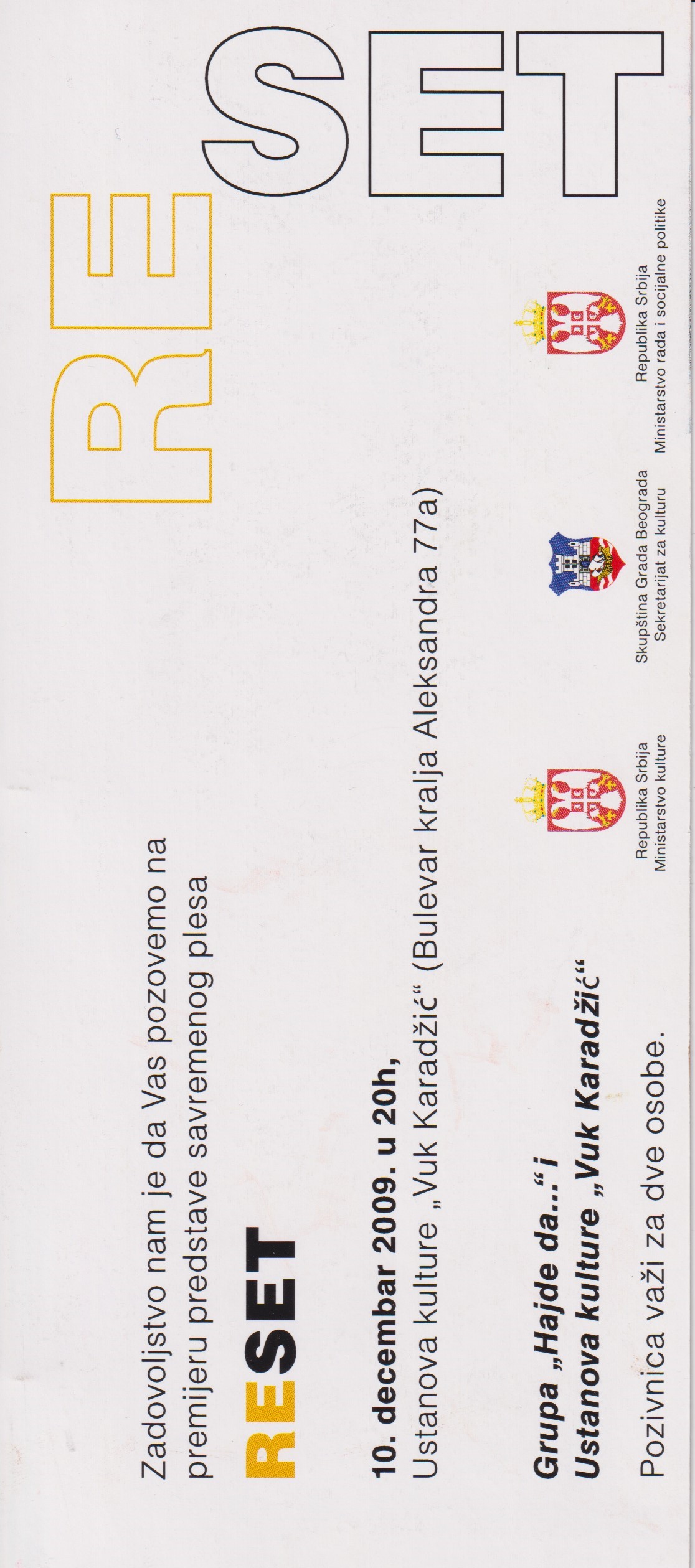 Electronic systems have a life of their own. They are created and work. They also die. Viruses attack them. They are treated by specialists. They lose energy due to information congestion, requiring multiple subsystems to work simultaneously. Sometimes they are not able to recognize other systems, establish communication, cooperate compatibly. Sometimes they stall, enter an uncontrolled state and "fall". They must be stopped, all activity terminated, allowed to recover energy, so that the processors can restart and their contented hum can be heard again. It seems to be the same with humans. The play RESET is first of all a story of awakening.