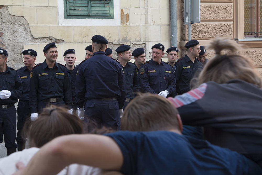 Bodying was a 24-hour protest by dance artists held in front of Zagreb’s City Assembly on May 2, 2017. The name blends tijelo (body) and djelovanje (action), highlighting how the body itself becomes a site of activism. This protest featured dance, improvisation, instant choreography, and performative gestures, using physical presence as a form of resistance. Organized by the Zagreb Dance Centre Plenum (Zagrebački plesni centar, ZPC Plenum), the movement involved dancers, guild members, and the wider art community, advocating for an independent dance institution founded on civil-public partnership. Their goal was to demand accountability, transparency, and democratic governance reforms at the Zagreb Dance Centre.
