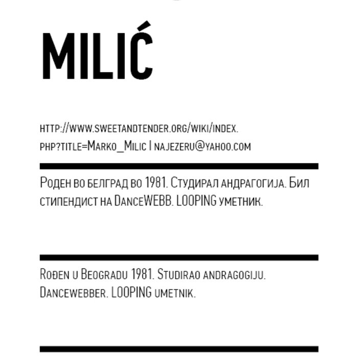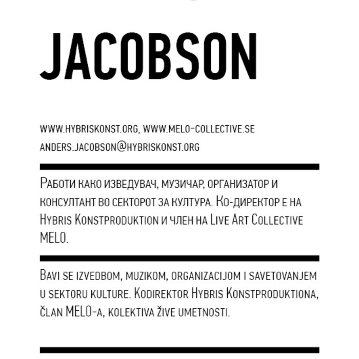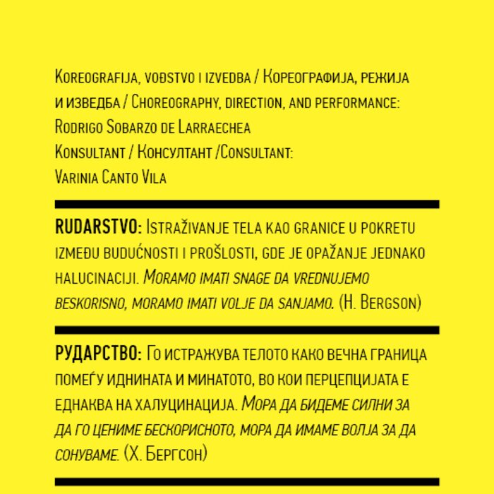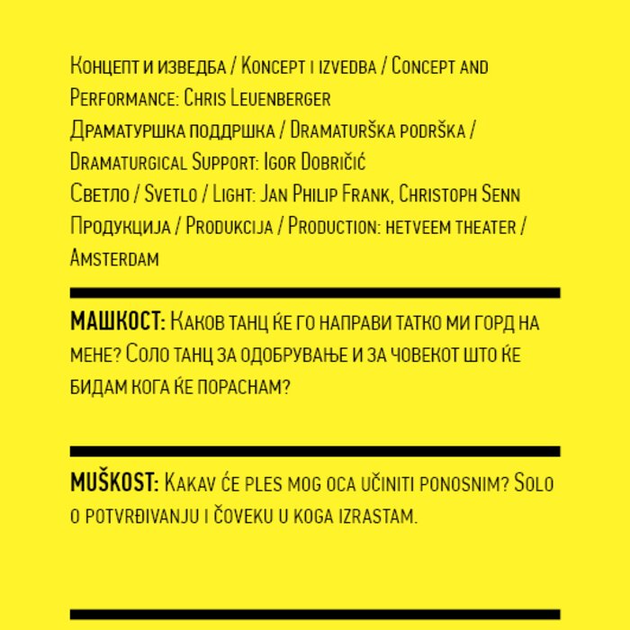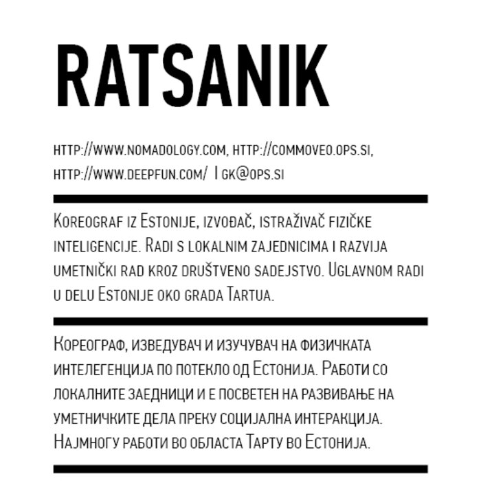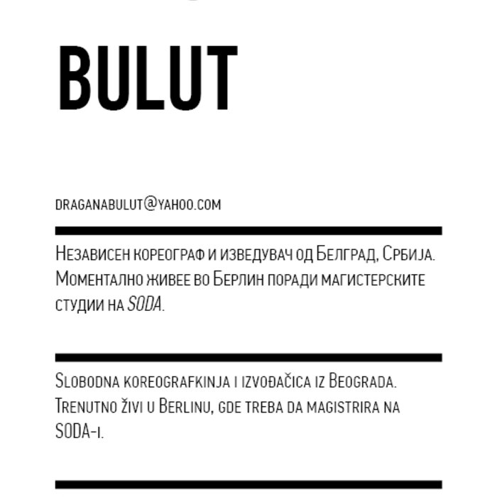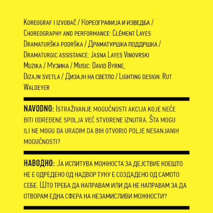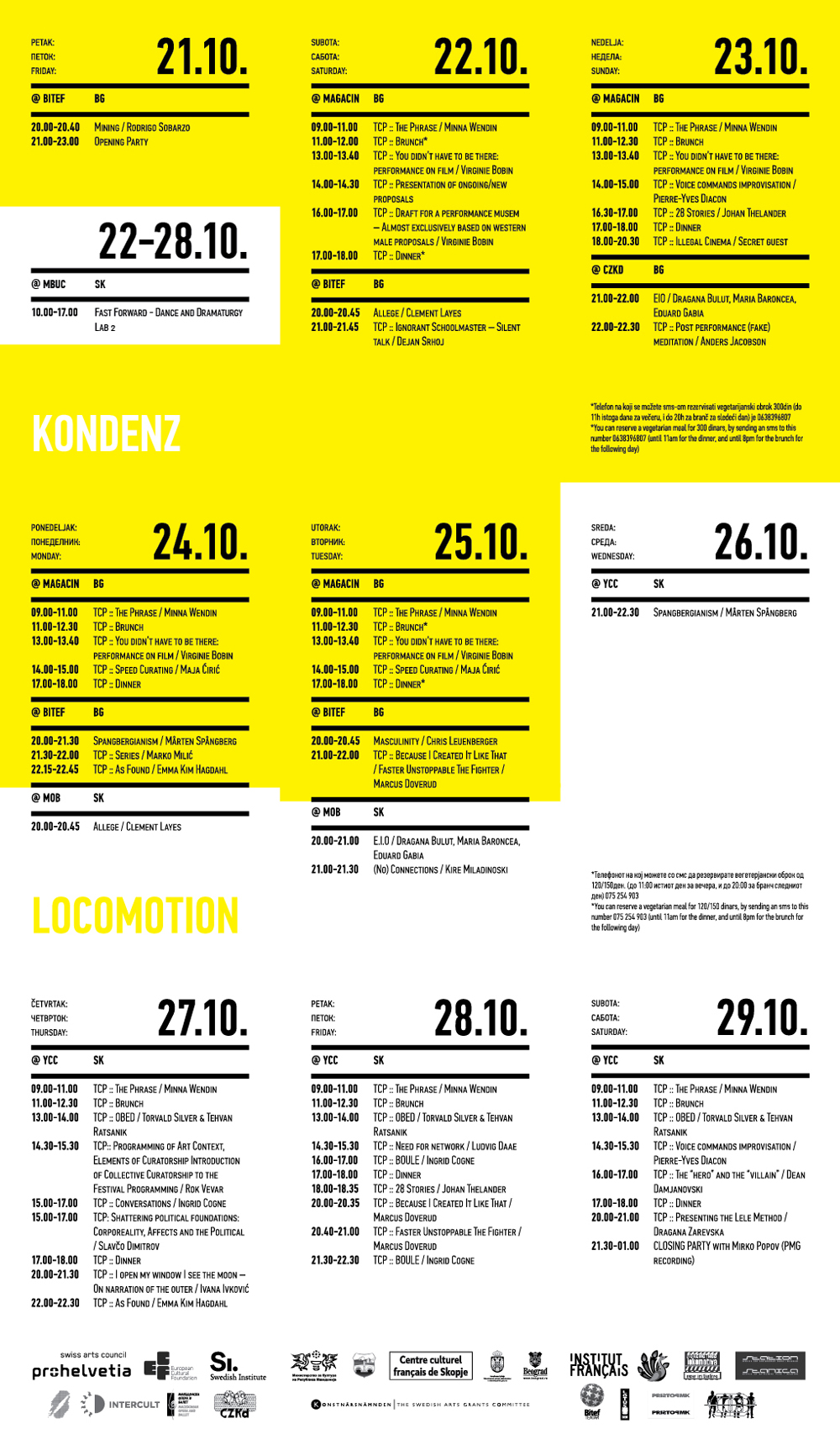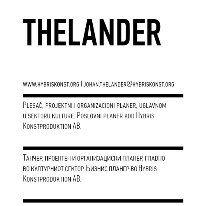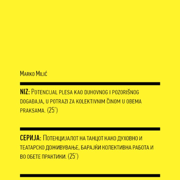 Four years ago, the Station Service for Contemporary Dance and the Lokomotiva Centre for New Initiatives in Arts and Culture founded two regional festivals: the Kondenz in Belgrade and the Locomotion in Skopje. Both festivals were formed under the auspices of the Nomad Dance Academy network with the aim to present the latest, most innovative works by choreographers from the region and beyond. The goal is to familiarise our local audiences with different aspects of contemporary dance and performance. Festivals can be seen as ephemeral venues that can both appear and disappear rather quickly. We realise that nowadays artists travel and present their work all over the world, without being able to affect local contexts, to engage in exchange, to learn, or even to acquire experience. Under the logic of neoliberal capitalism festivals have become venues for marketing artistic work, with little to offer in terms of their social, educational, and developmental value and without fostering exchange, intervention, or generation of knowledge. Therefore, this year we have decided to realise the programme in a different way, dedicating most of it to an attempt to alleviate those lacks. We have decided to join the two festivals together and open up more space for communicating with the audience, offering a programme that will challenge the borders between authorities, space, the audience, performers, programmers, territories, and festivals. Sharing their responsibilities in curating and organisation and in collaboration with Hybris Konstproduktion from Sweden, Kondenz and Locomotion devised a part of their respective programmes together and named it “The Curatorial Programme”. Both festivals feature pre-selected programmes consisting of several performances. Kondenz invited four performances by authors active in the European context: Rodrigo Sobarzo, Clément Layes, Dragana Bulut, Maria Baroncea, Eduard Gabia, and Chris Leuenberger; Locomotion also invited four performances, by Clément Layes, Dragana Bulut, Maria Baroncea, Eduard Gabia, Torvald Silver, Tehvan Ratsanik, Kire Miladinovski, and Aleksandra Kočovska. “The Curatorial Programme” consists of proposals by a pool of participants, artists, theorists, and organisers working in the field of contemporary performing arts, from a number of countries, including Macedonia, Serbia, Croatia, Slovenia, Romania, Sweden, France, and Switzerland, among others. The Curatorial Programme was developed by means of a different festival methodology: rather than inviting a selection of specific performances, our team of curators invited a set of artists, theorists, and organisers. The selected participants were then asked to propose and co-create the programme with the curating team, bringing different approaches to work creativity, knowledge, aesthetics, etc. Also, they will be present for the duration of the festival and the Curatorial Programme. The idea is to give the participants a chance to meet their audience, so that together we may try and reconstruct the notion of the festival and spend quality time together. Also, we hope that this will result in producing new fields of interest and knowledge, in exchanging information, sharing, learning about the differences and similarities among various methodologies of creativity, contextual circumstances, and logic.