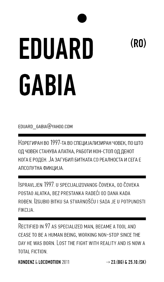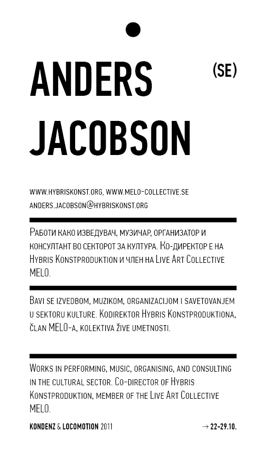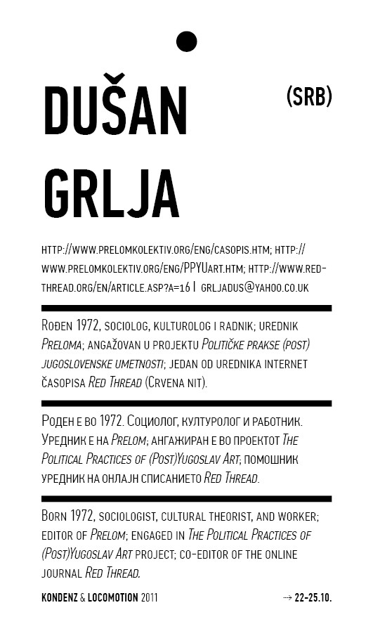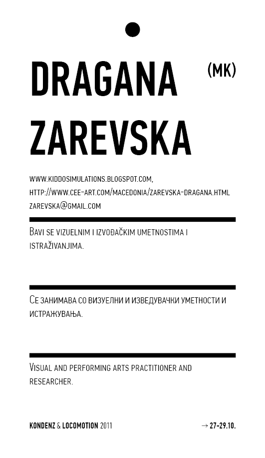 Locomotion, Skopje and Kondenz, Belgrade, October 2011