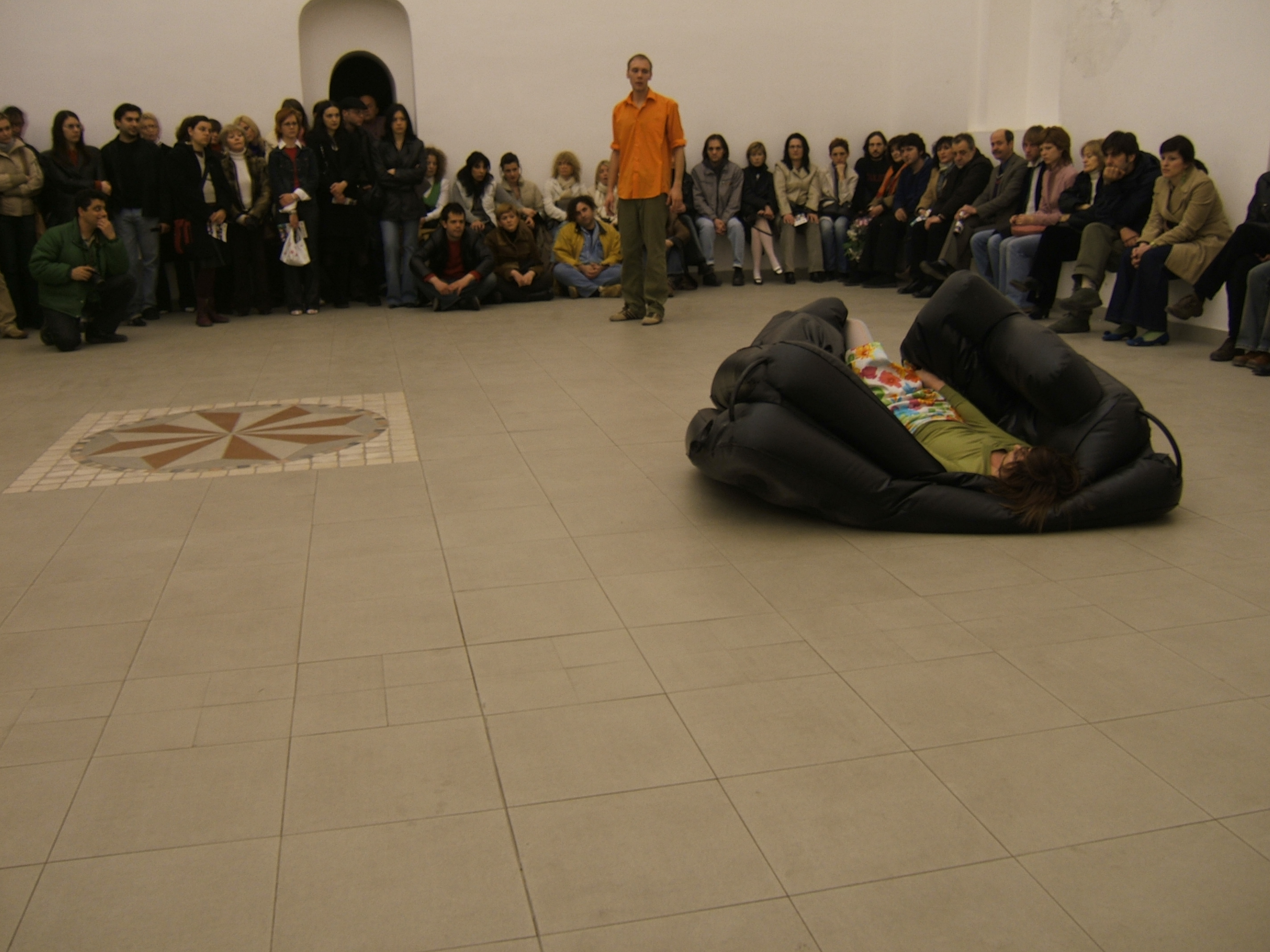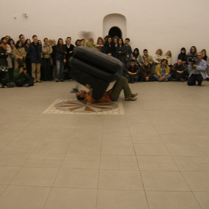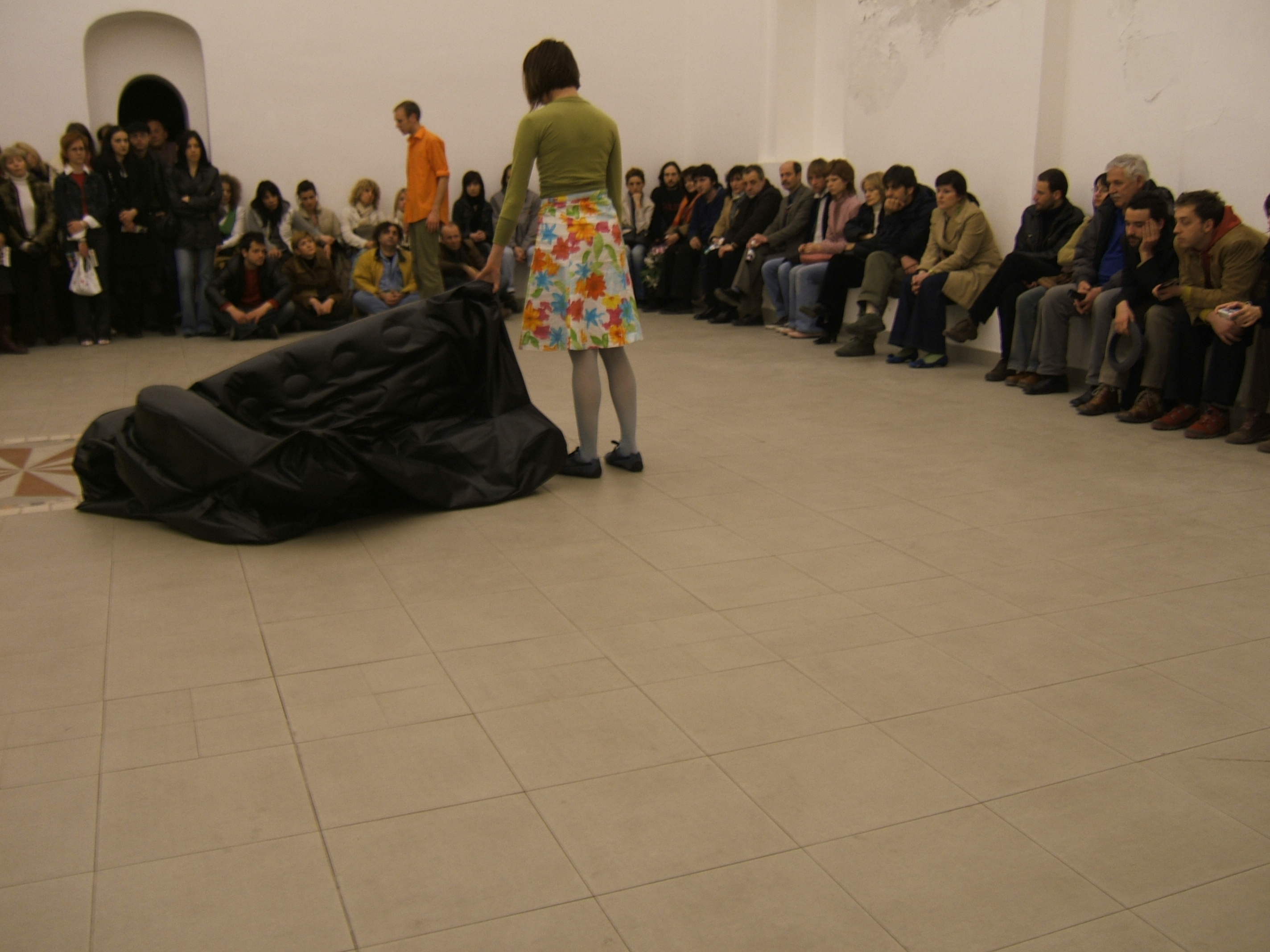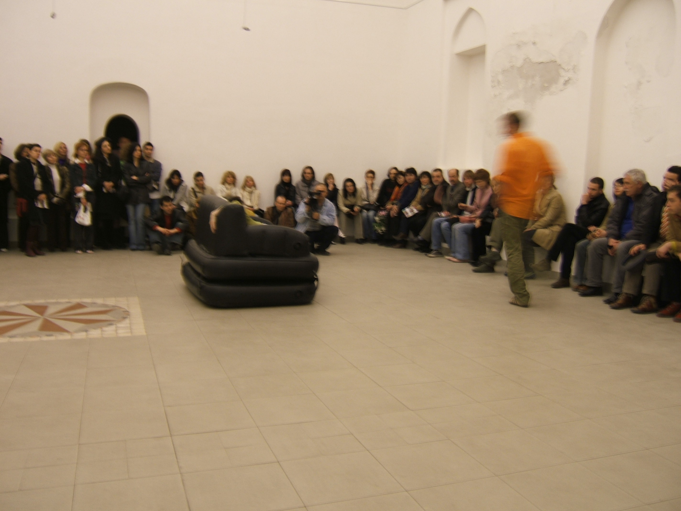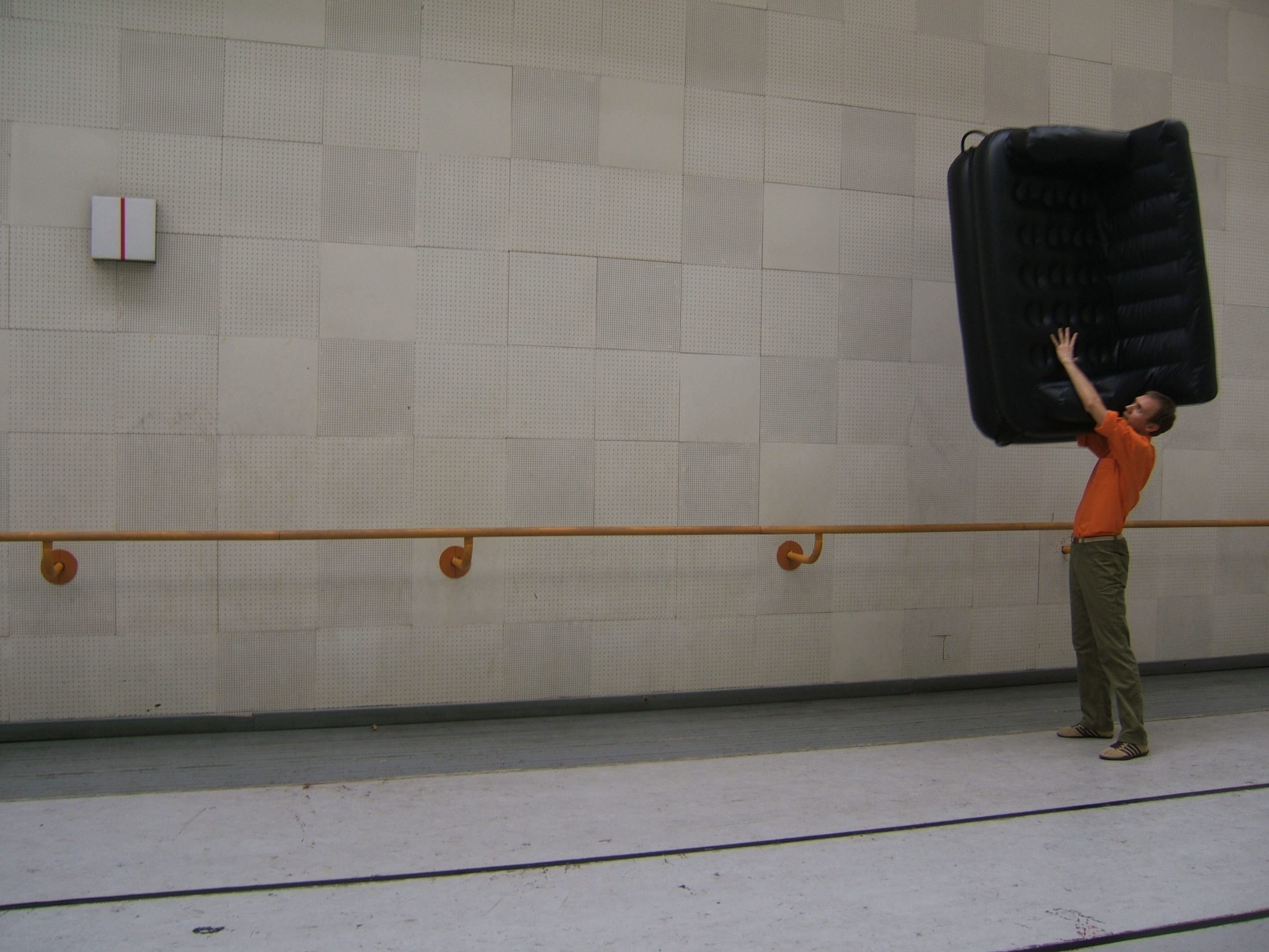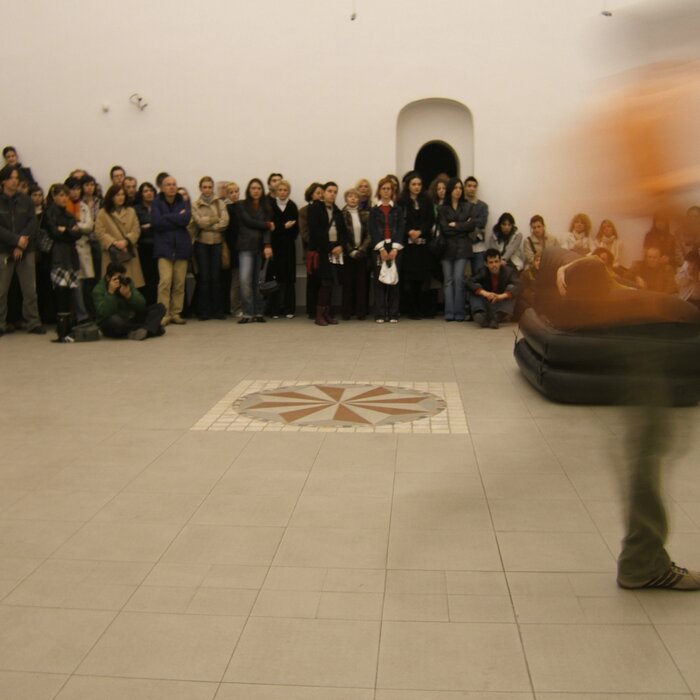 A collaboration between two artists choreographer and composer who explore the relation in sound and movement. The inspiration of the work stems from the different conditions created as a result of the relationship between a man, woman and a air filled - plastic couch..