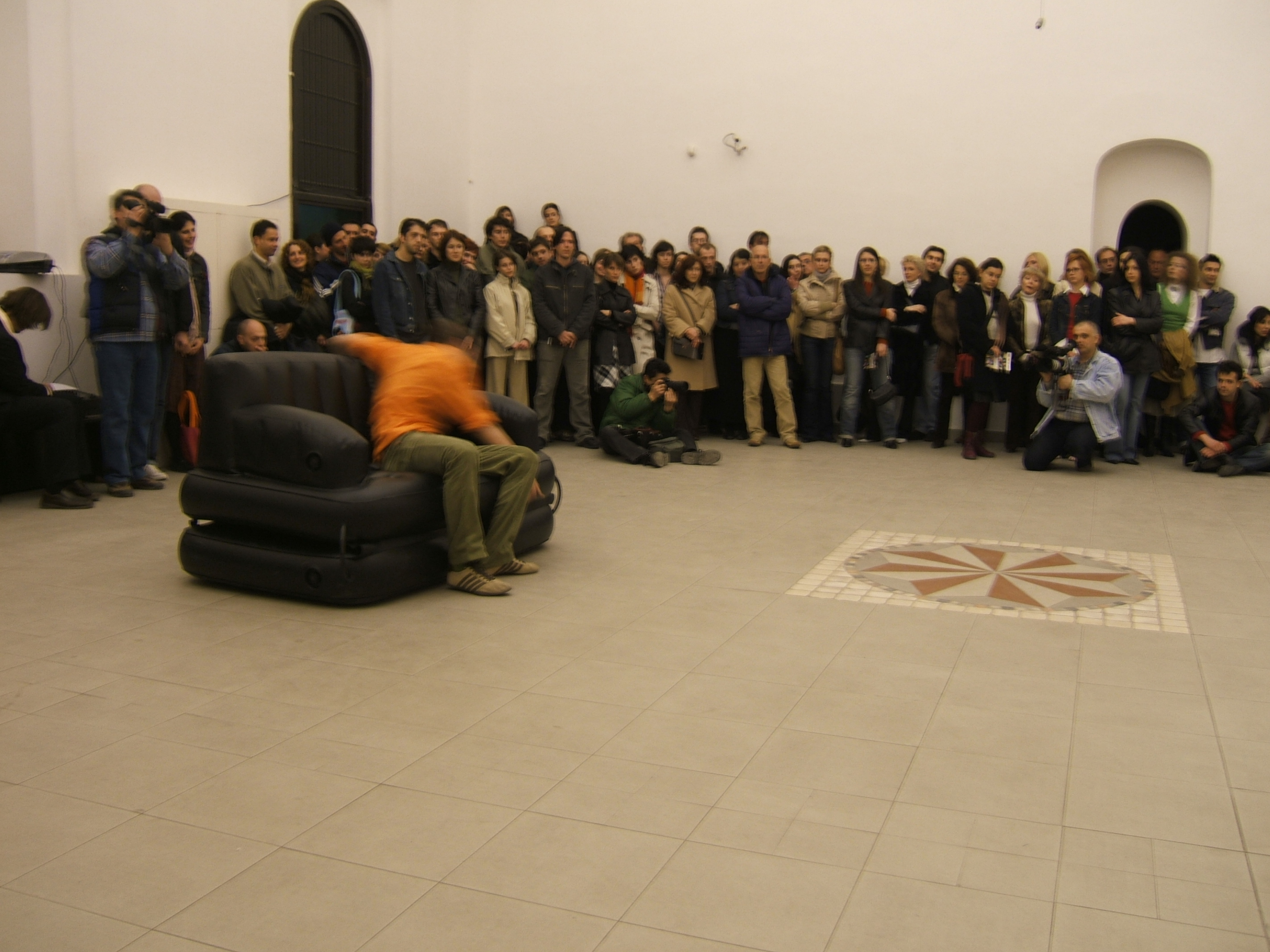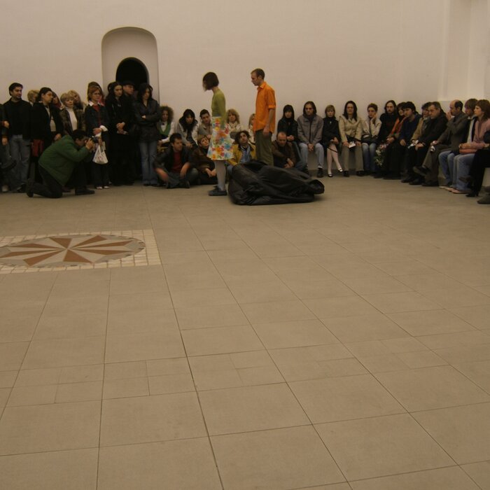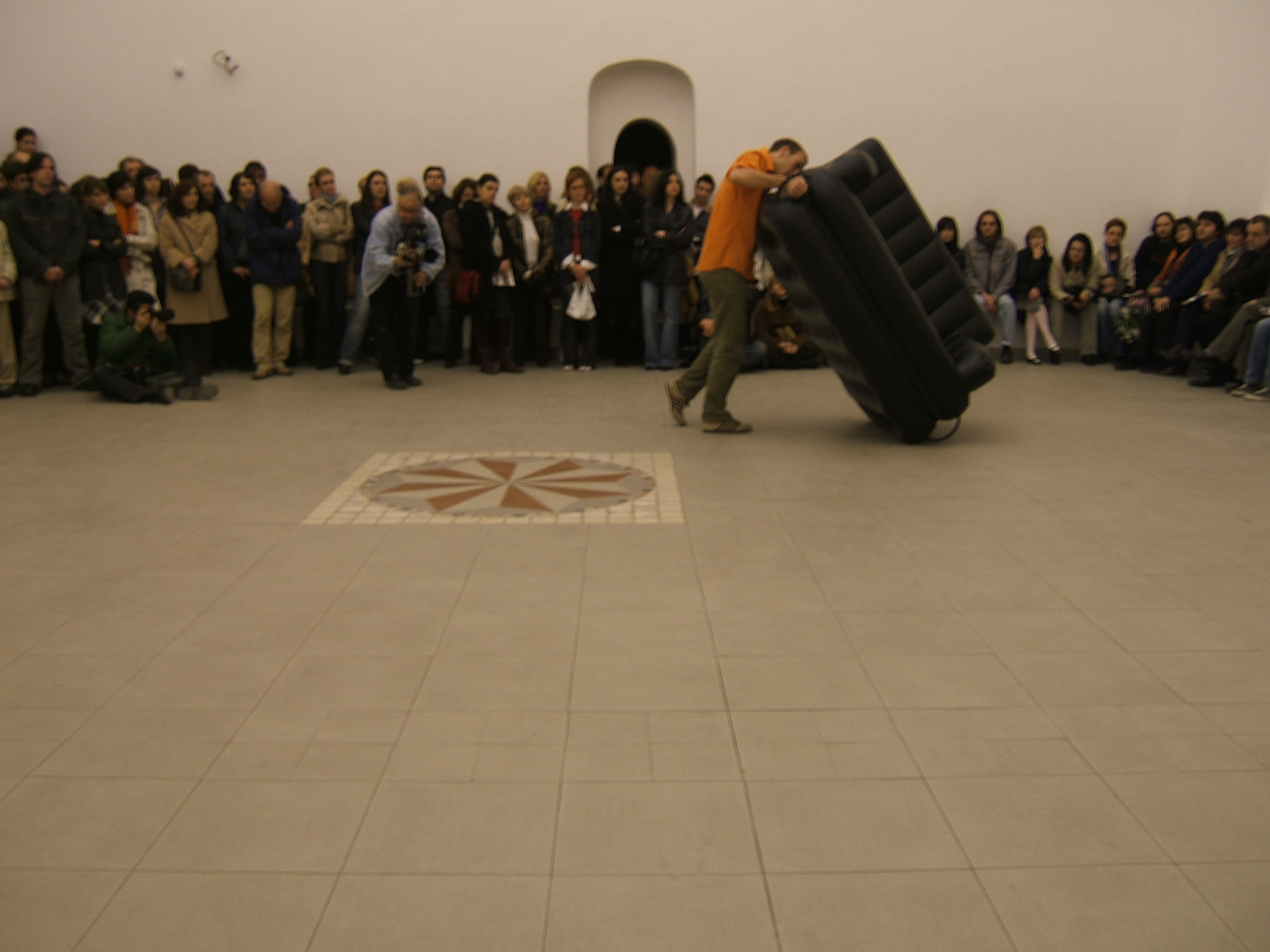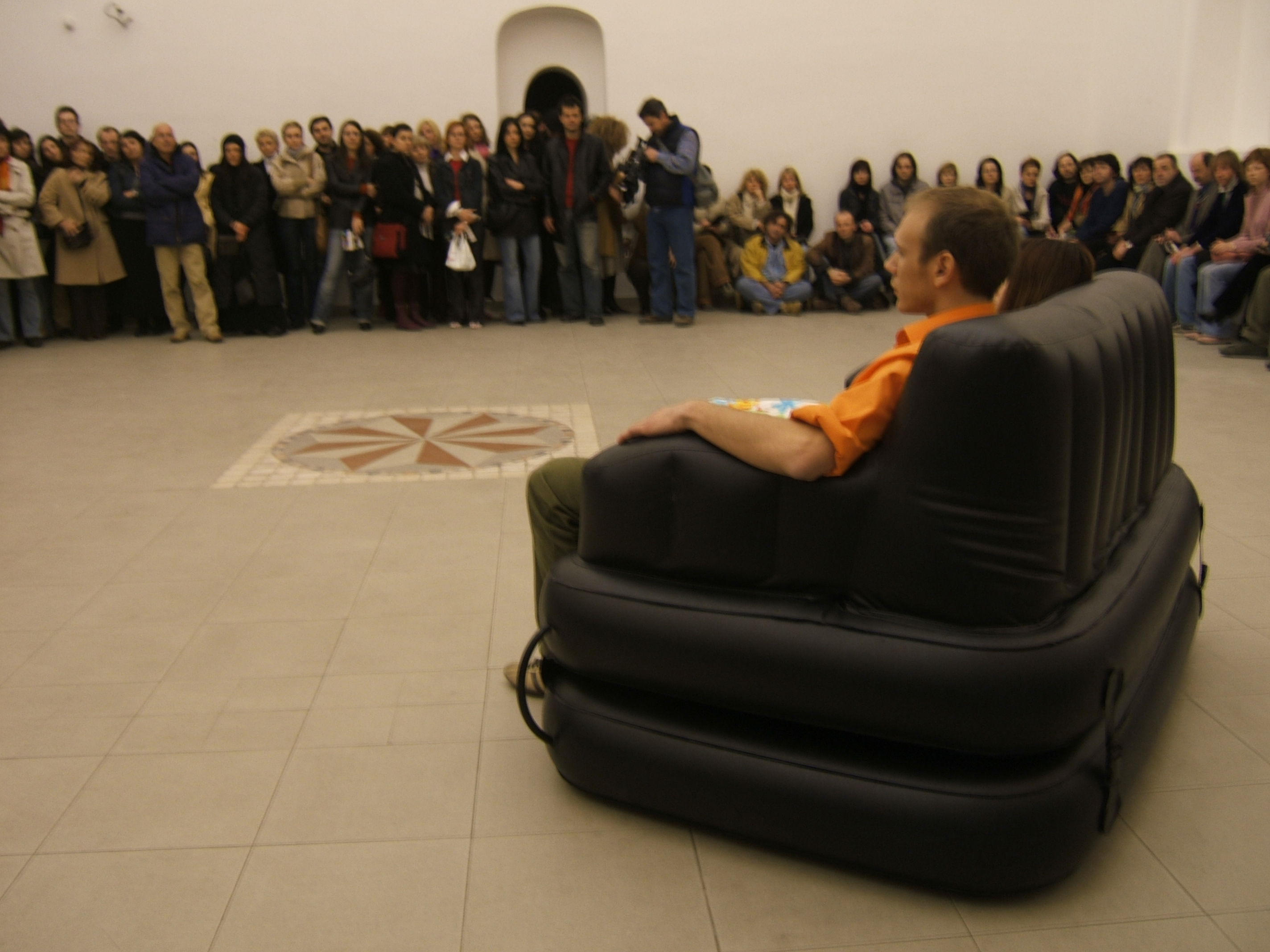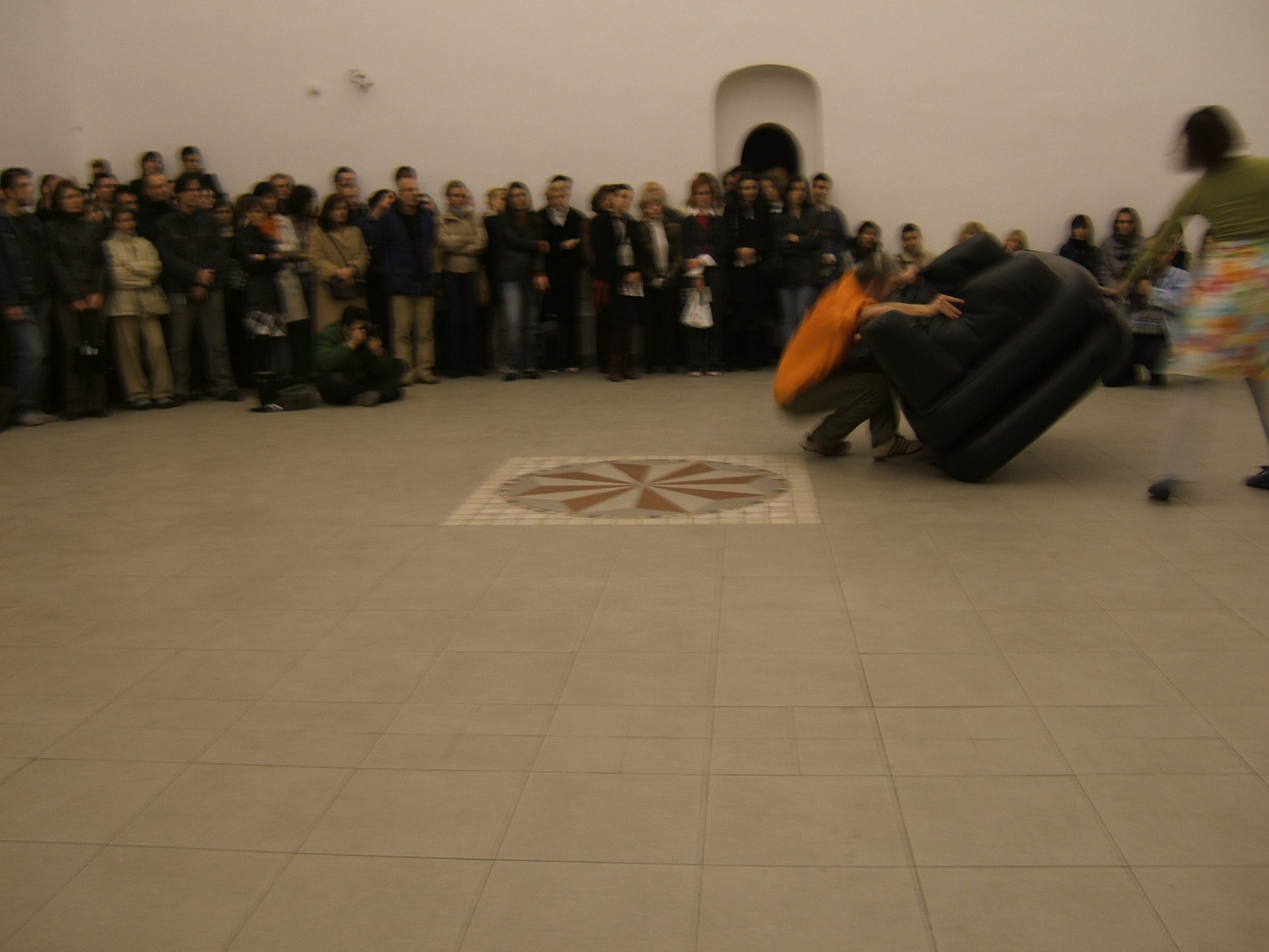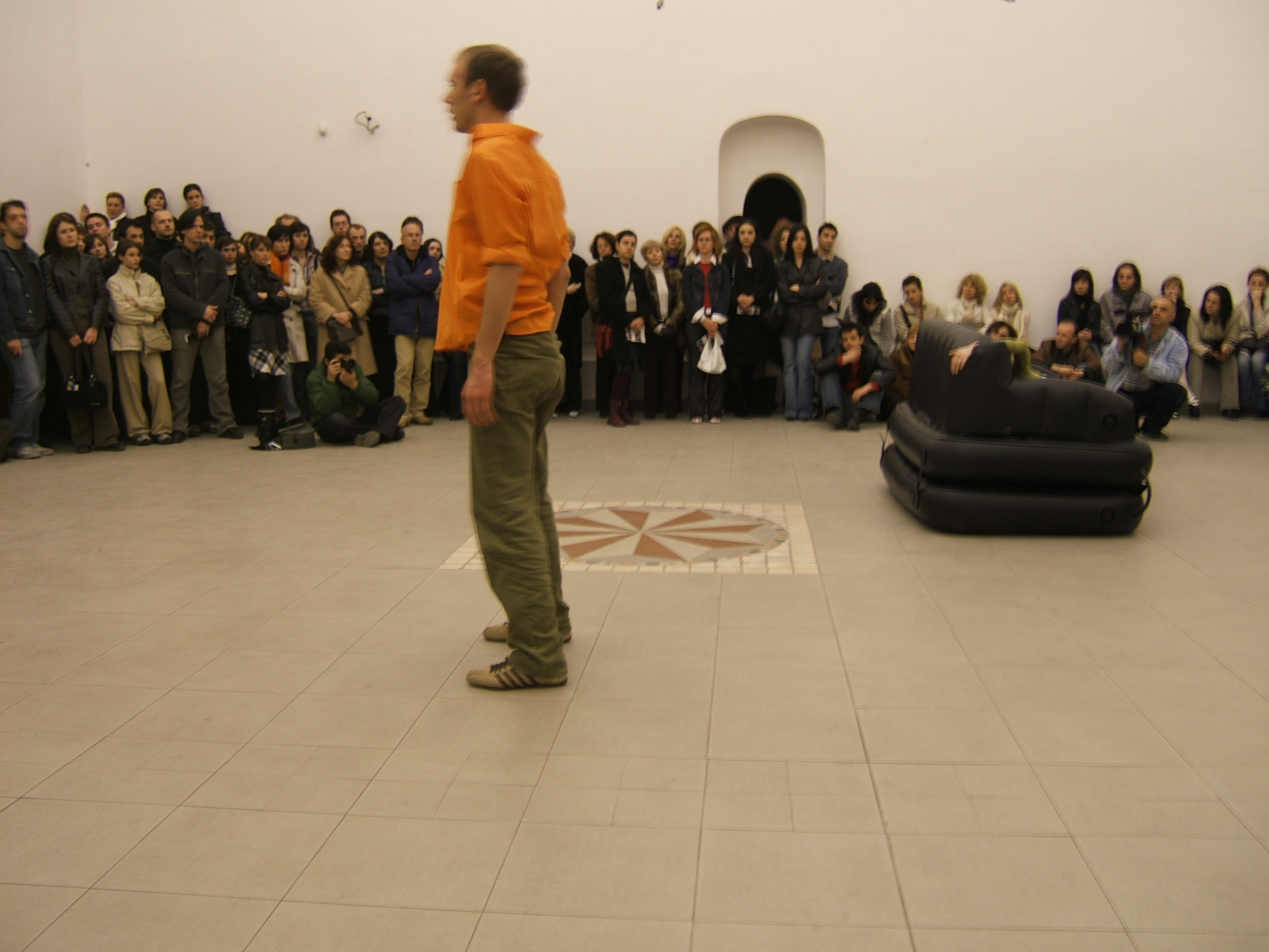 A collaboration between two artists choreographer and composer who explore the relation in sound and movement. The inspiration of the work stems from the different conditions created as a result of the relationship between a man, woman and a air filled - plastic couch..