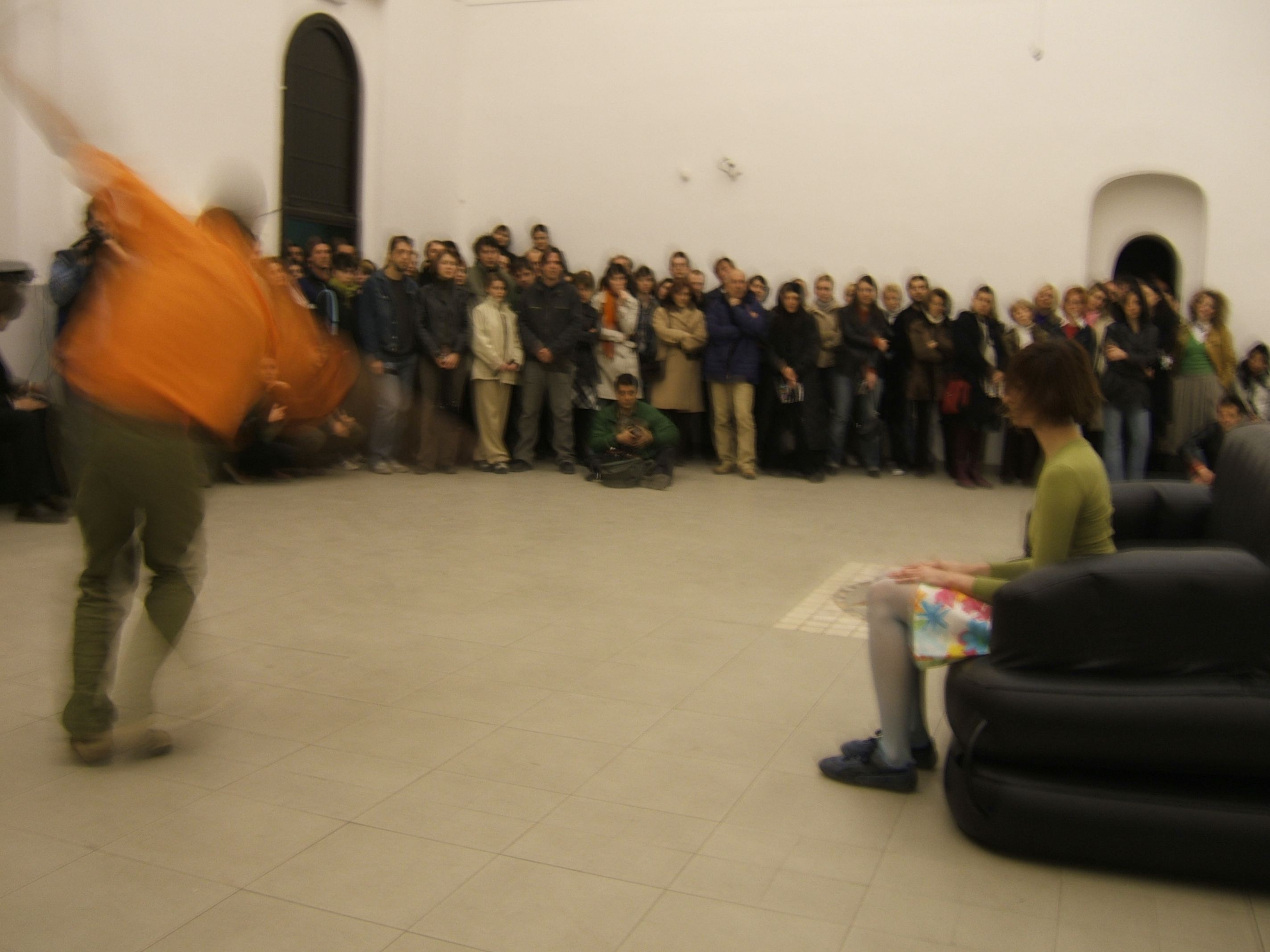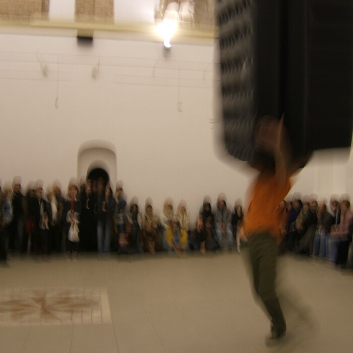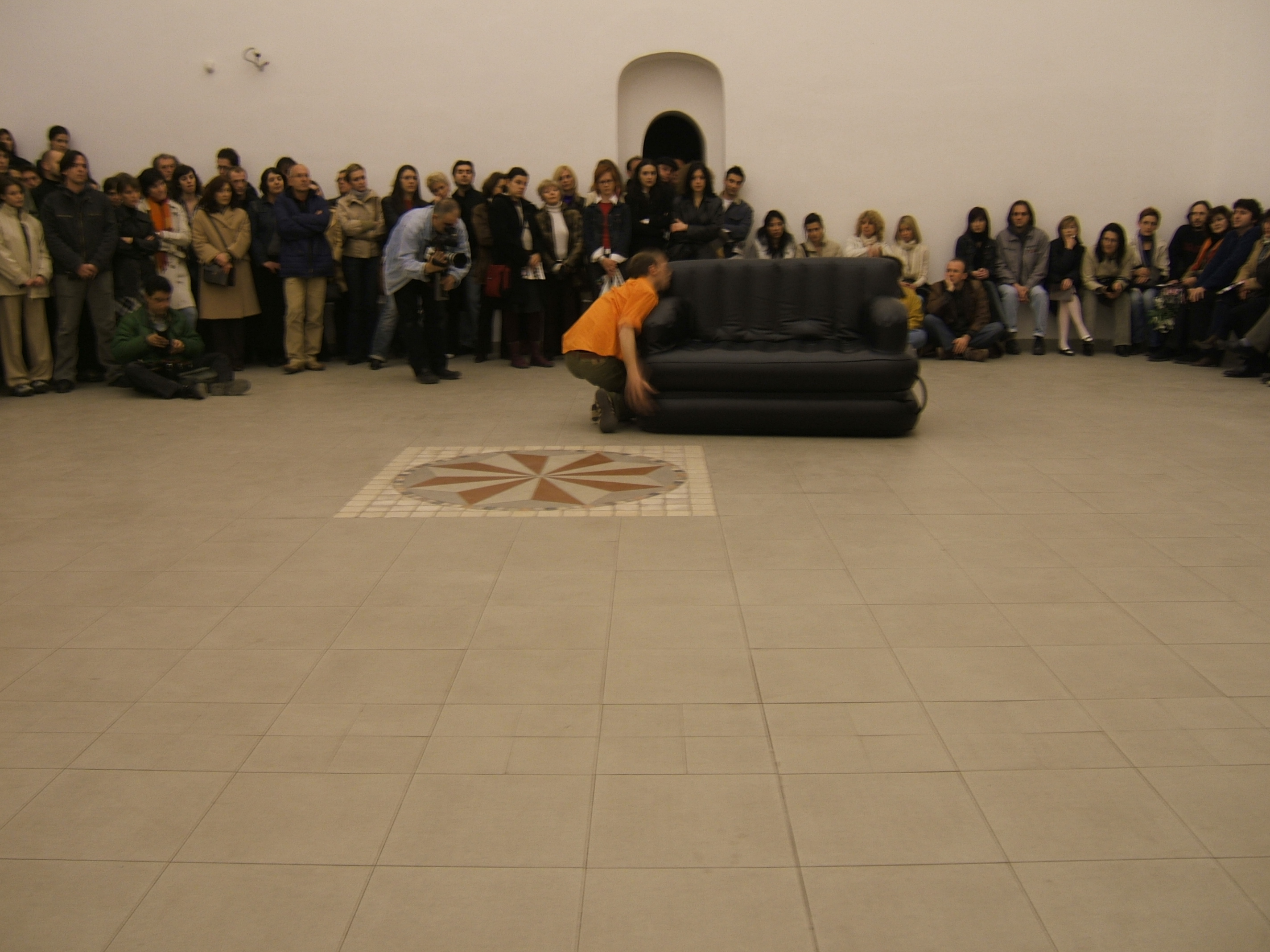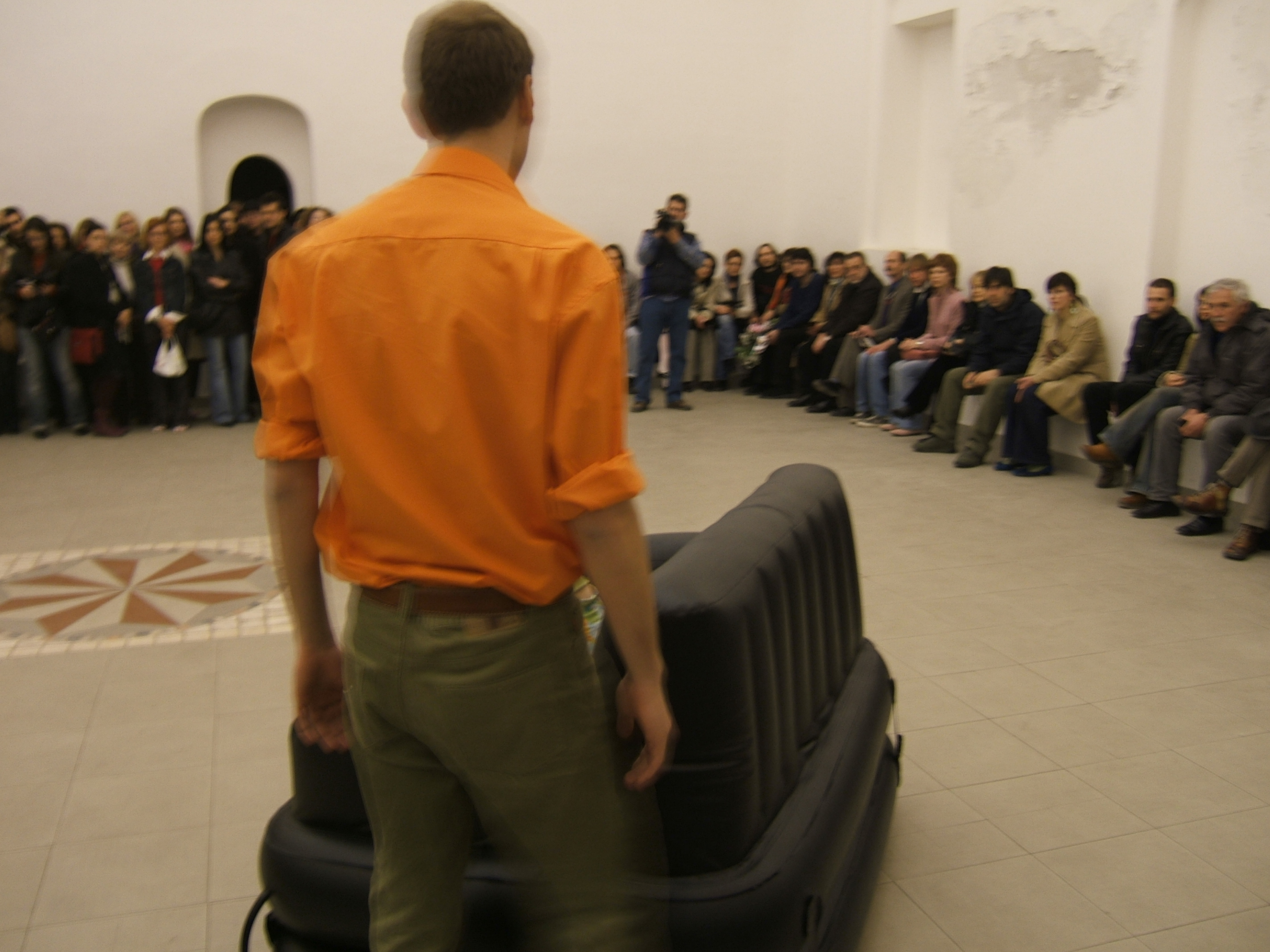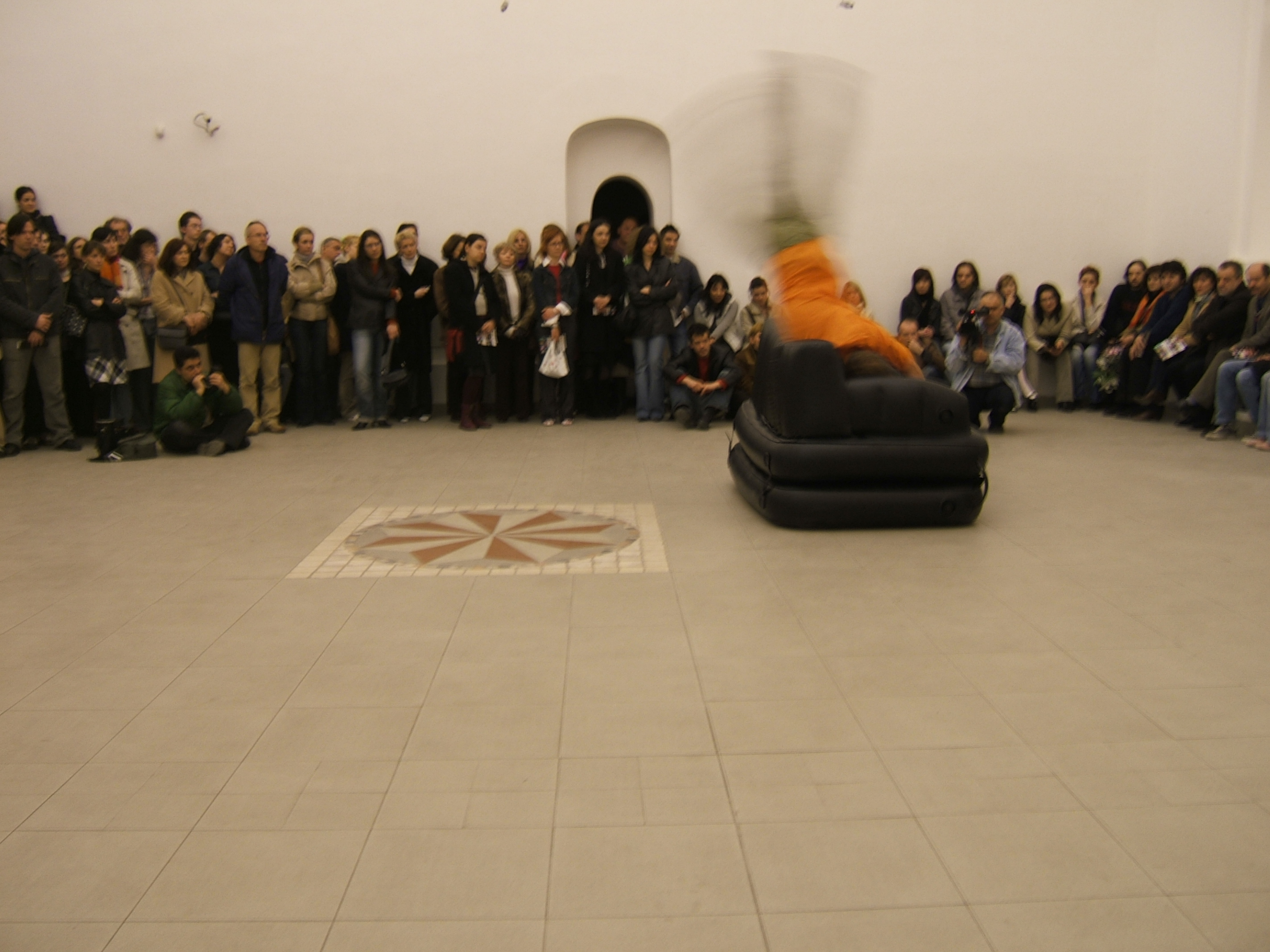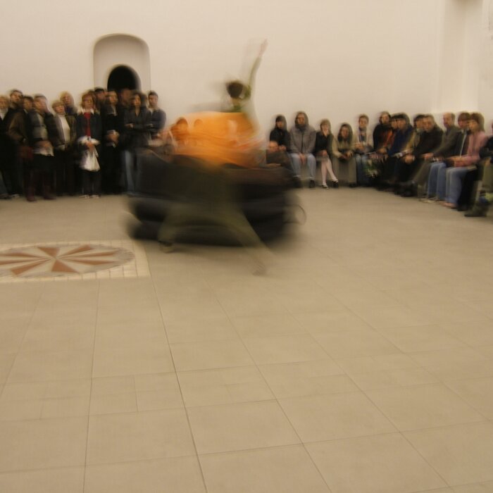 A collaboration between two artists choreographer and composer who explore the relation in sound and movement. The inspiration of the work stems from the different conditions created as a result of the relationship between a man, woman and a air filled - plastic couch..
