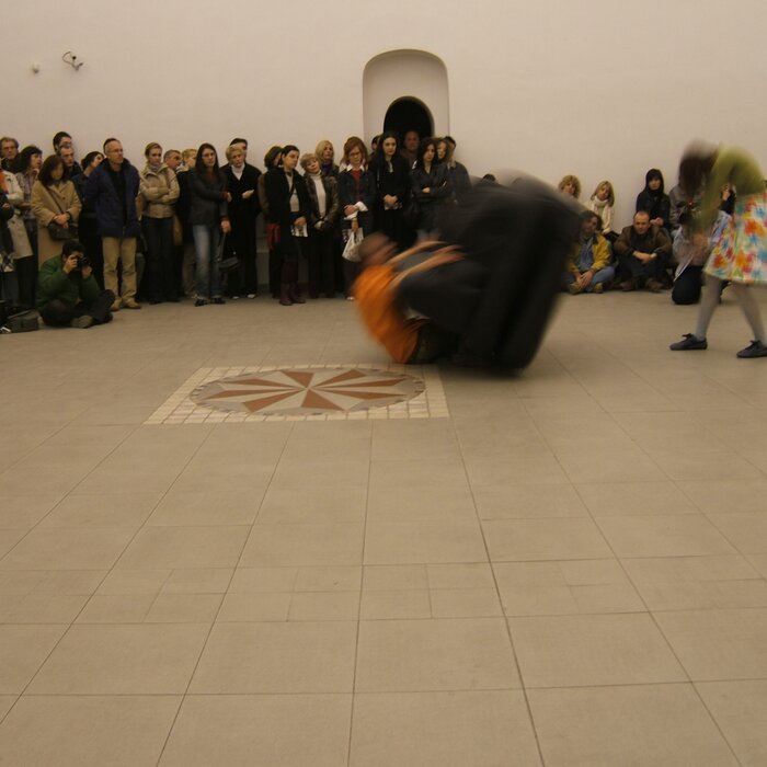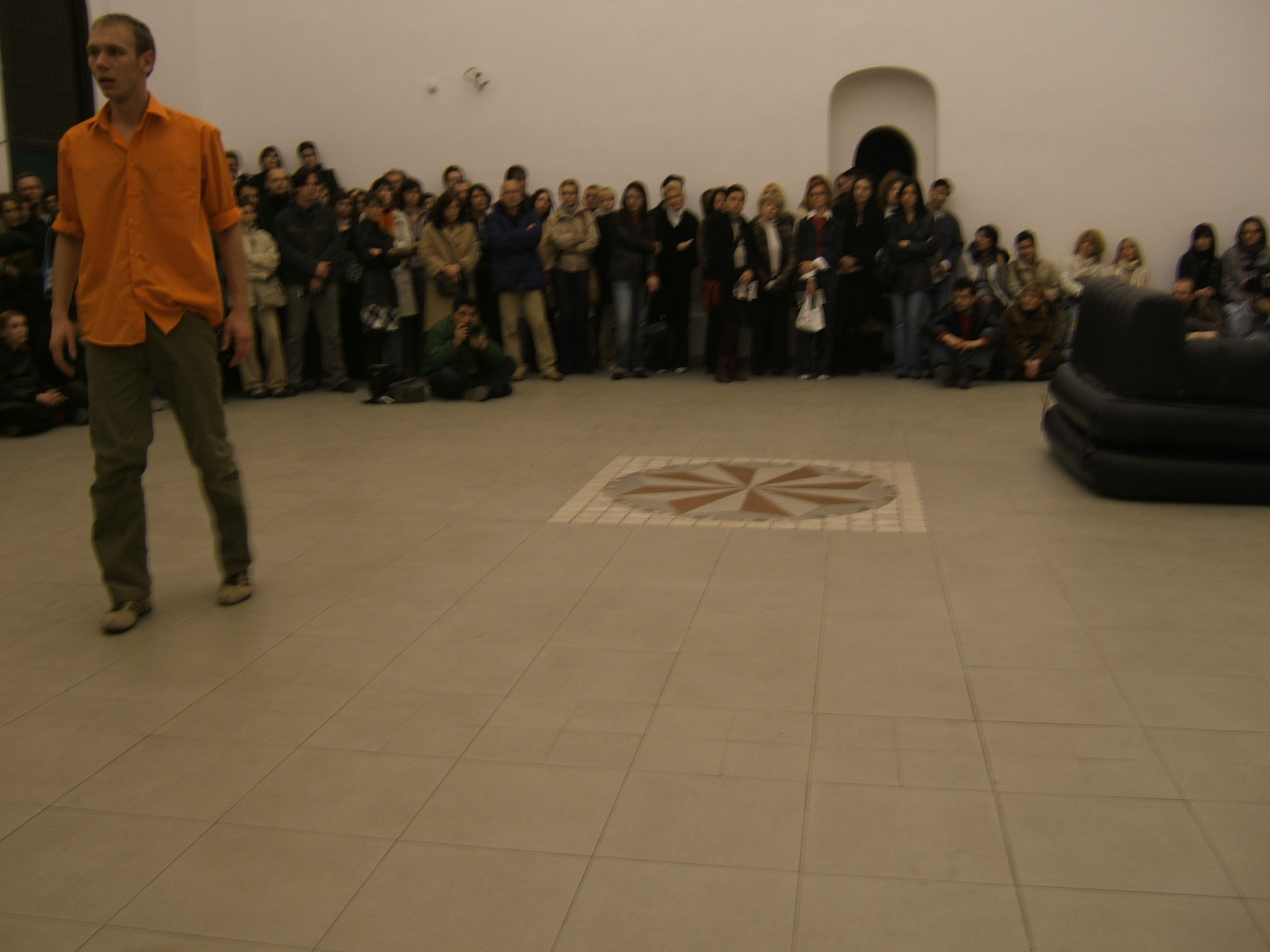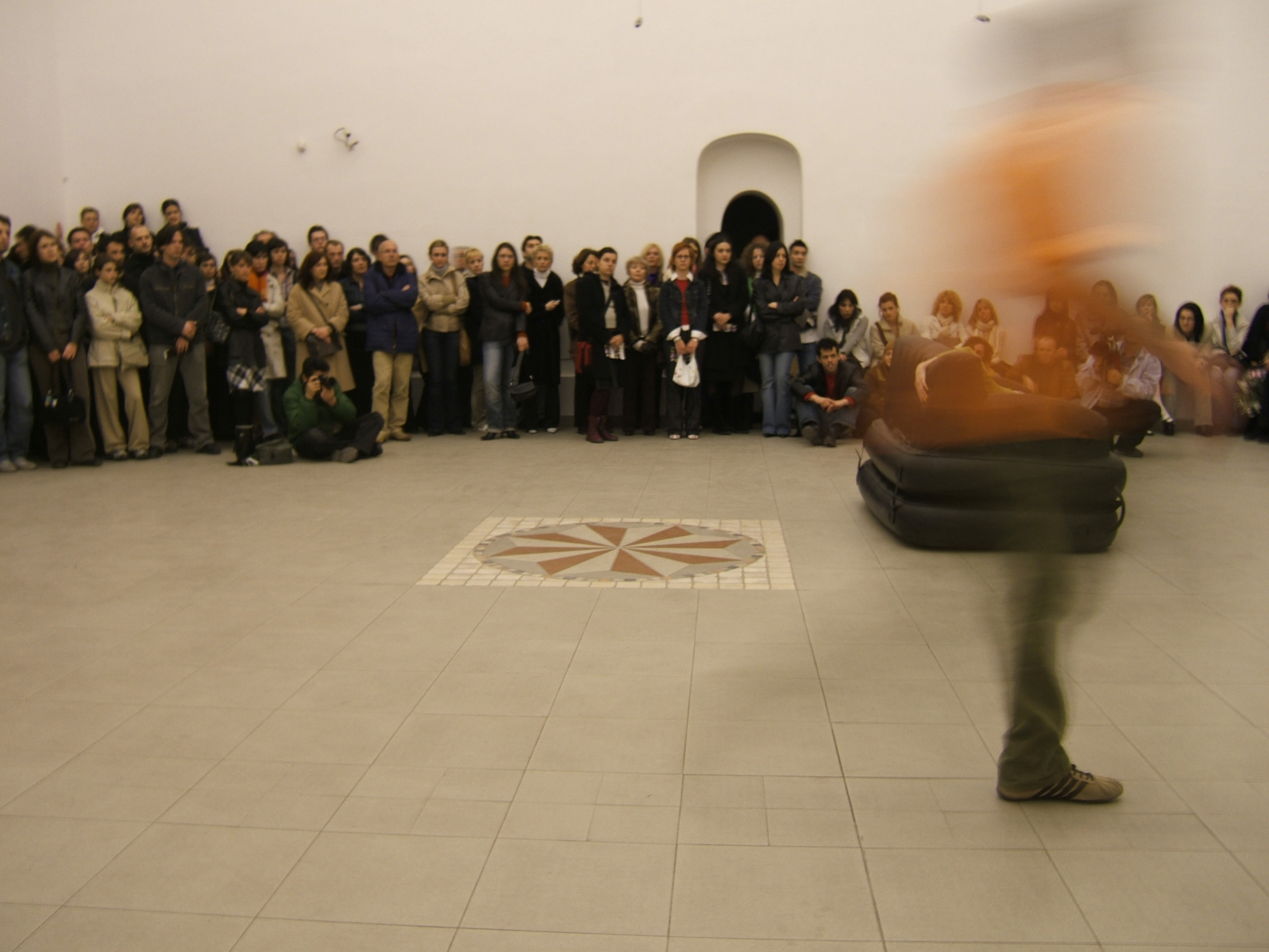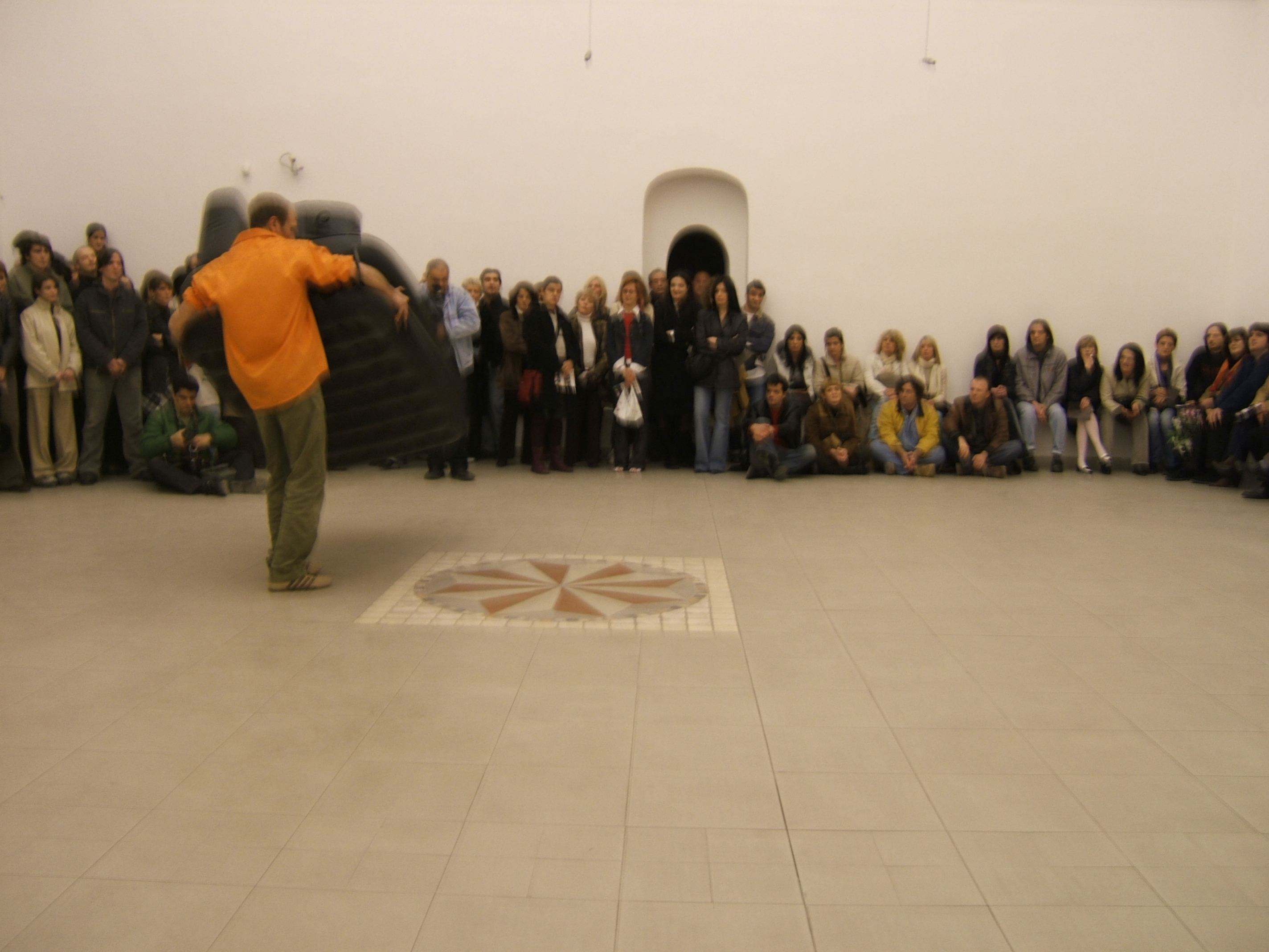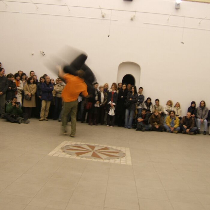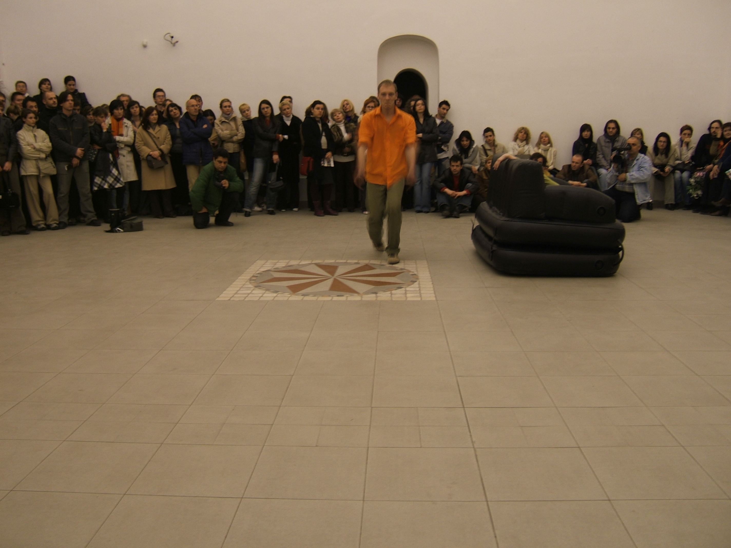 A collaboration between two artists choreographer and composer who explore the relation in sound and movement. The inspiration of the work stems from the different conditions created as a result of the relationship between a man, woman and a air filled - plastic couch..