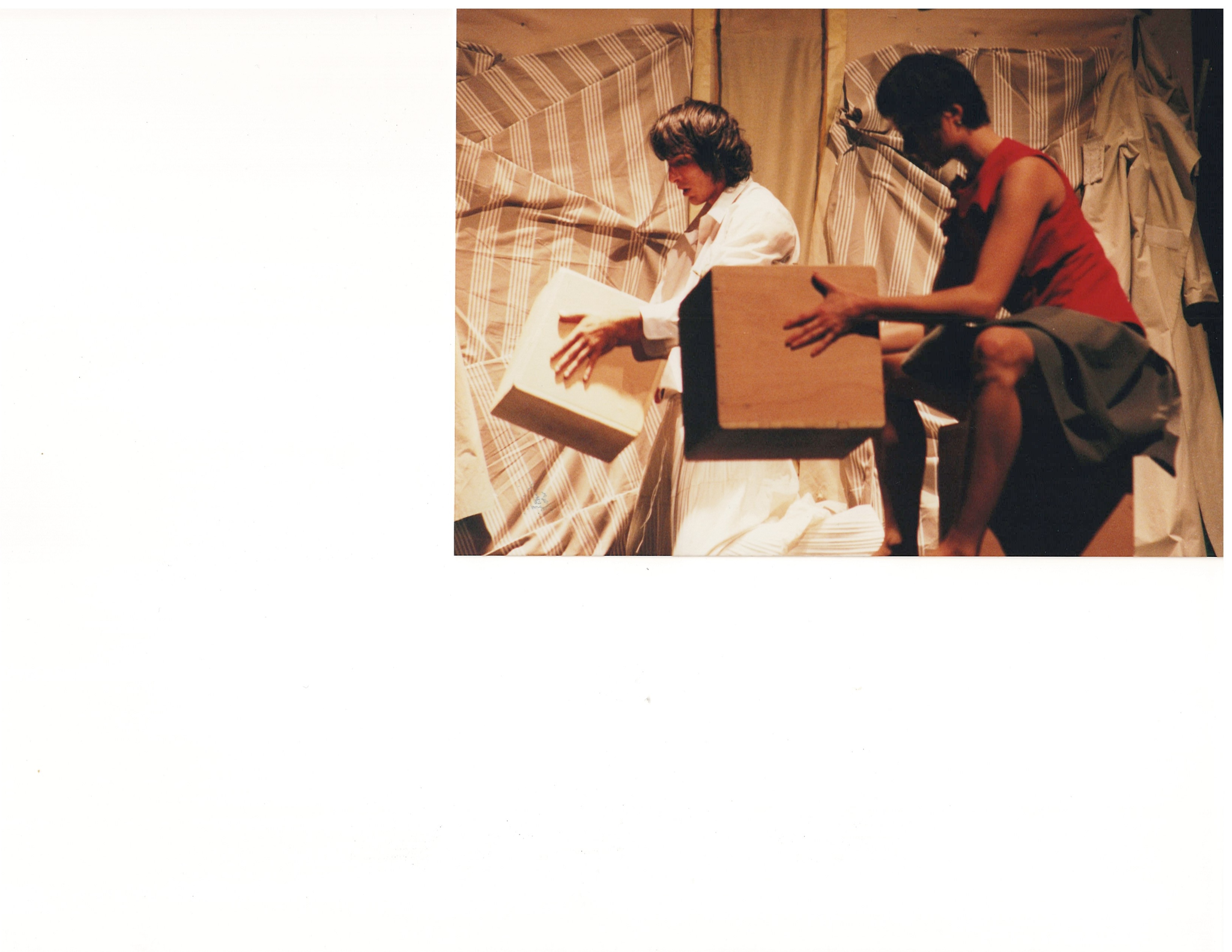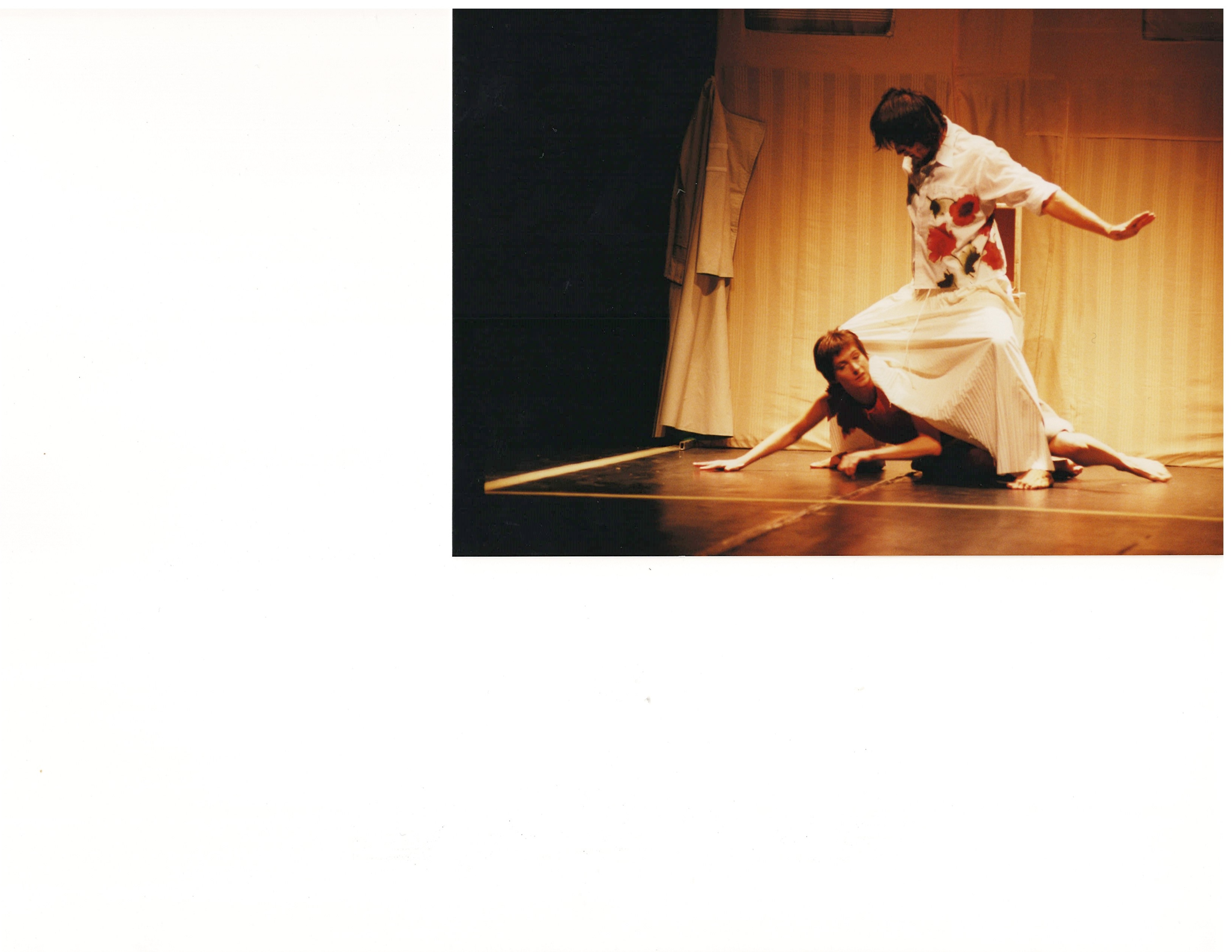 QB2 - began like an idea for putting together in one single expression: choreography, design and the music. Based on one Macedonian love song, each of the artists made his own mark in the final realization using his artistic experiences. Like the words from the song, two young people are going through three changes (metamorphoses) in which they are constantly followed by the invisible power (the stepmother). Symbolically it is presented with "the cube" which follows the lovers and obstructs their love. But, their love still wins, entering the immaterial sphere. They find themselves in their world, which is presented like basil, symbol of the pure love.